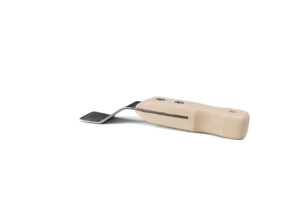 Лопатка для монтажа гарпуна в профиле, расположенном в нише за оконном карнизом. Позволяет мастеру избегать контакта со стеной